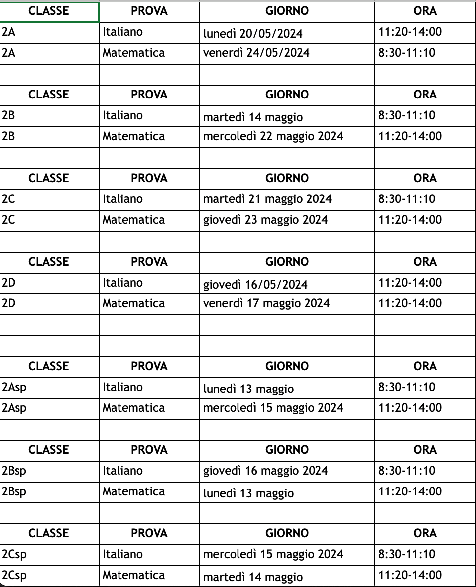 - al di fuori dello svolgimento della prova, l’orario di lezione risulta invariato;
