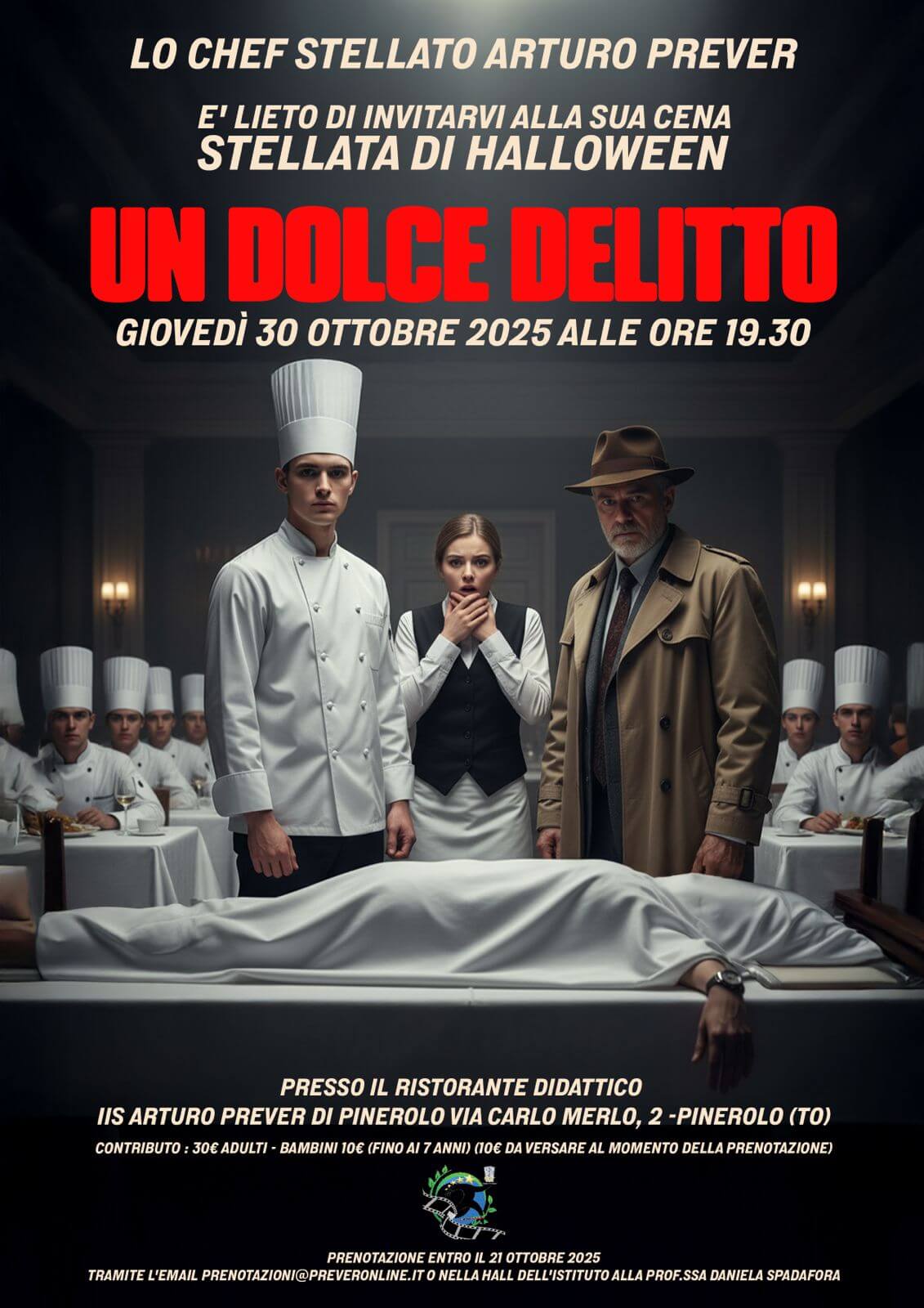 Il primo evento che avrà luogo giovedì 30 ottobre 2025, alle ore 19:30, sarà la terza edizione della Cena con delitto – Un dolce delitto.