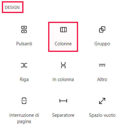 Nell’editor di WordPress un blocco simile utile per aggiungere colonne è disponibile nel gruppo Elementi del layout. Pur consentendo di creare layout a colonne. Il blocco colonne è disponibile nella sezione Design dell’editor