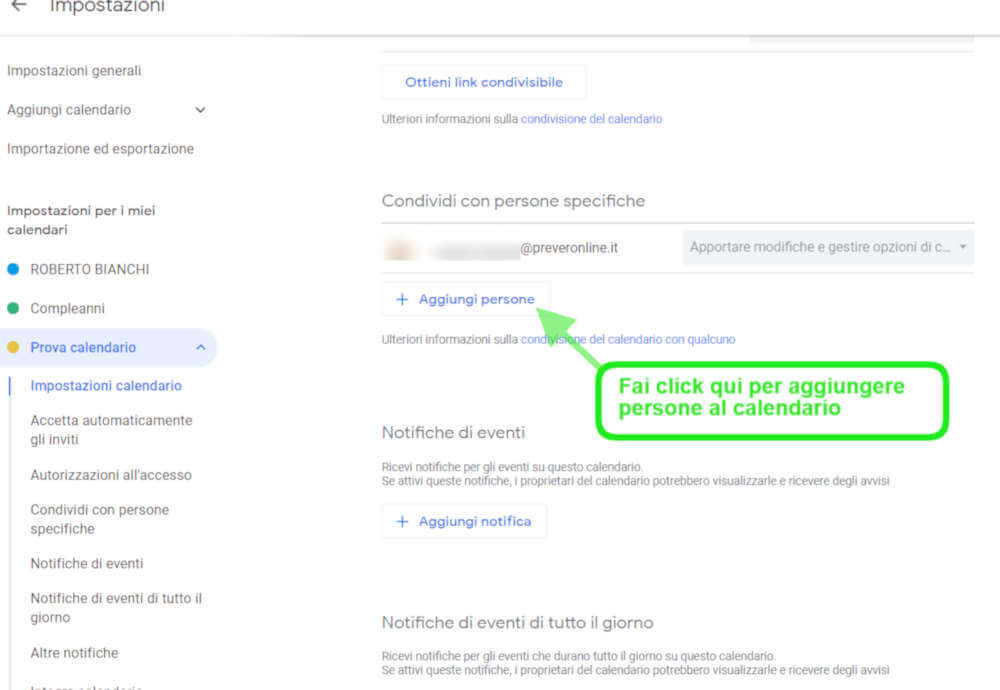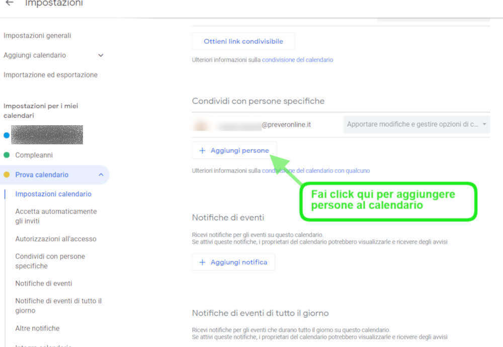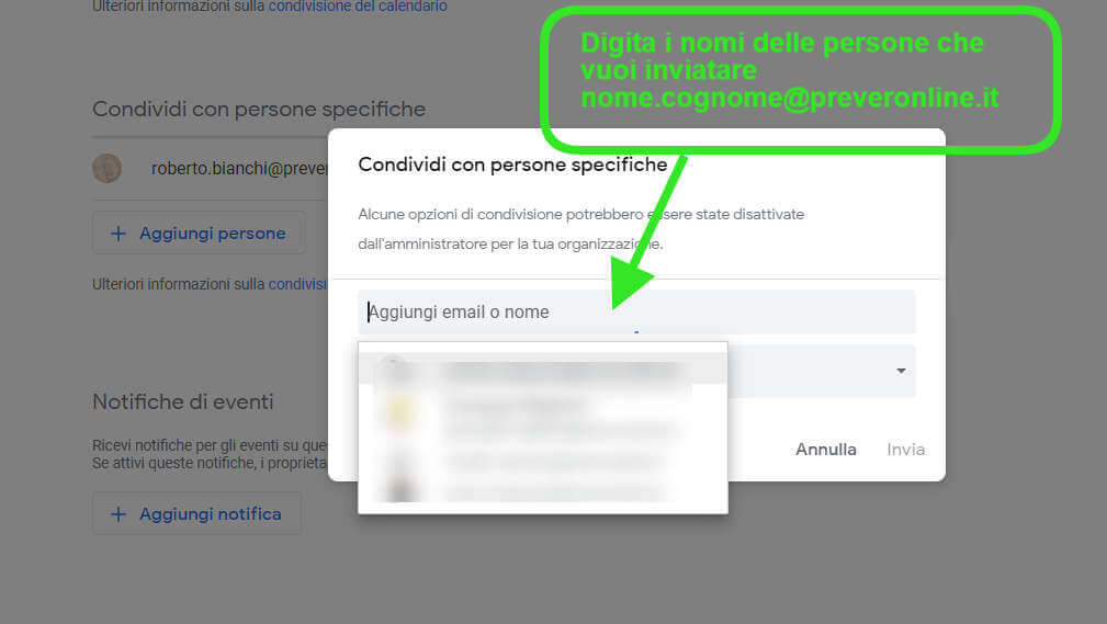Qui puoi inserire i nomi o gli indirizzi email delle persone con le quali vuoi condividere il calendario