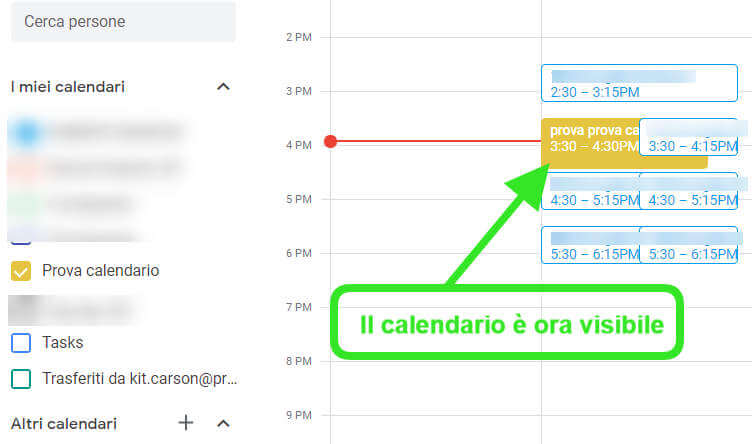Terminato di inserire le persone con le quali vuoi condividere il calendario, puoi tornare alla vista principale dove il tuo calendario sarà visibile con tutti gli altri. Se vuoi visualizzare solo un calendario specifico puoi fare click sul pulsante 3 puntini e selezionare la voce Mostra solo.