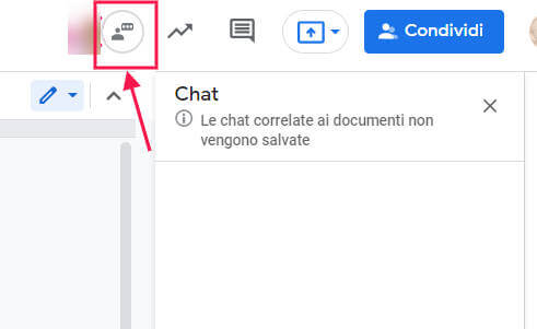 Puoi anche collaborare all’interno di documenti, fogli di lavoro o presentazioni usando la chat. Se il file è aperto da più persone, fai clic su Mostra chat, a sinistra dell’avatar delle persone collegate.