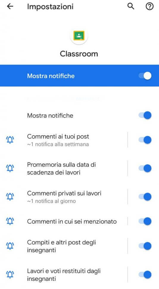 Per la gestione delle notifiche rimando alla guida del supporto Google su come attivare o disattivare le notifiche di Classroom che è più che sufficiente per ottenere un master in Google Classroom Notifications! 😉
