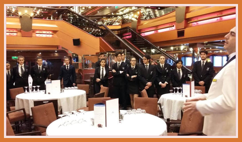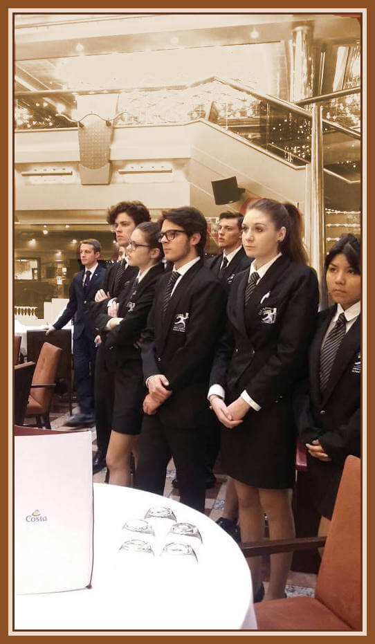 Costa Crociera: “navigando si impara”, gli allievi oltre a godersi un meritato periodo di riposo in gita, grazie all’organizzazione e alla disponibilità dei capi struttura, hanno assistito a spiegazioni ed attività pratiche nei vari reparti. Ristorante e bar, cucina, pasticceria, panetteria. Serate a tema e di gala. Accompagnatori: Girotto, Grassi, Meo.