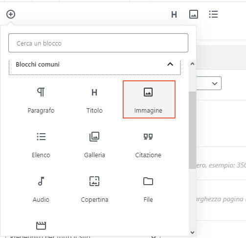 A questo punto forse stai pensando che per inserire un’immagine dovrà esistere un blocco immagine. E hai ragione! Per inserire un’immagine a corredo di un testo, si utilizza il blocco immagine.