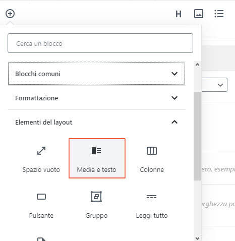 Il blocco copertina e il blocco media e testo sono utili per evidenziare parti di contenuti o per collegare sezioni del blog in modo graficamente piacevole e intuitivo.